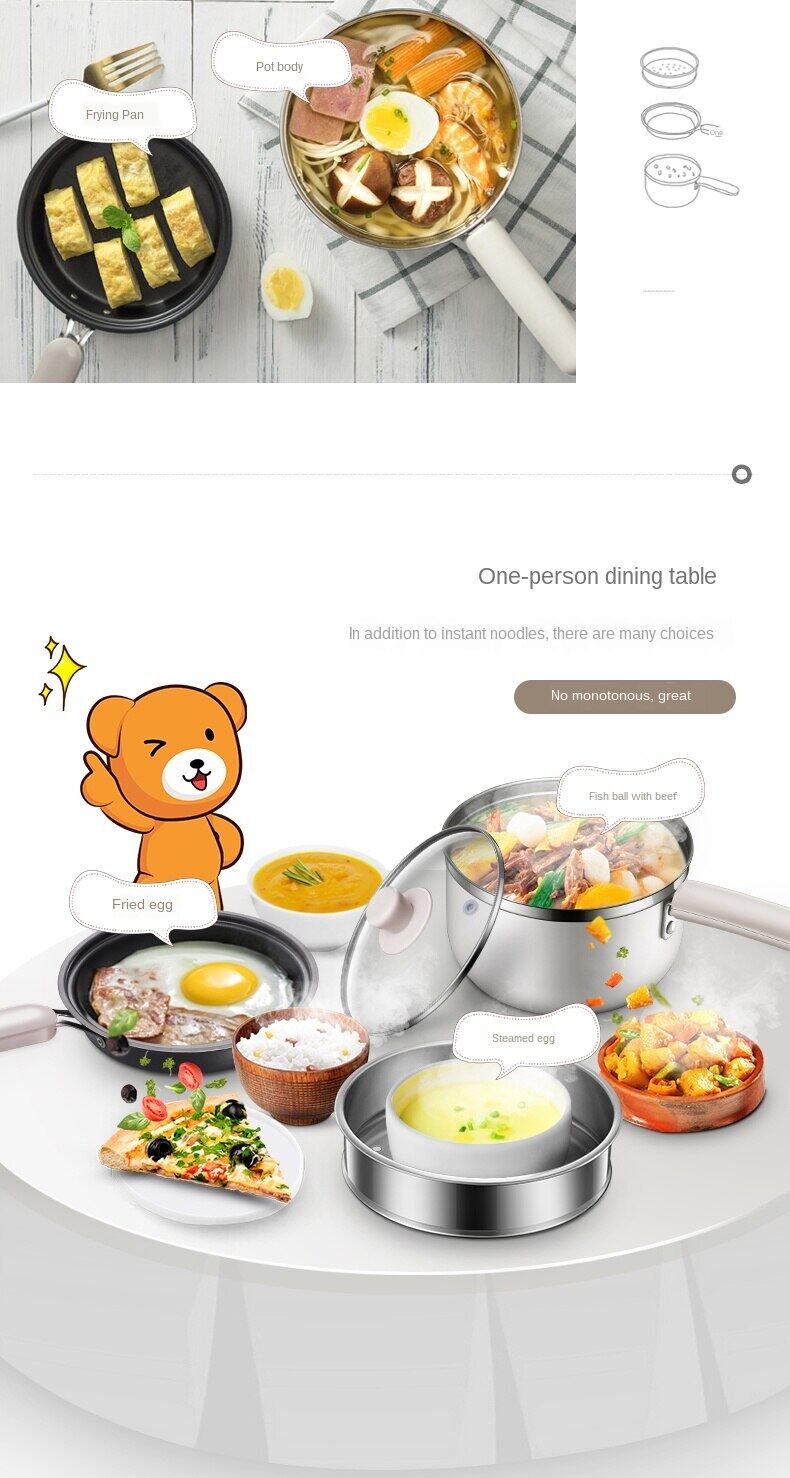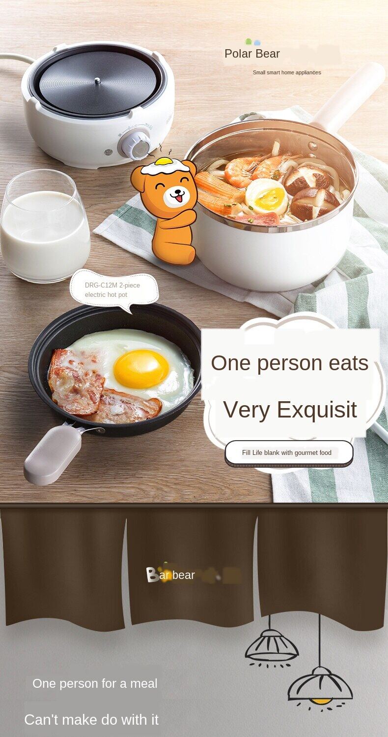 Bear Electric Hot Pot Student Dormitory Cooking Noodles Home Mini Multi-functional Small Electric Hot Pot Electric Frying Pan DRG-C12M2