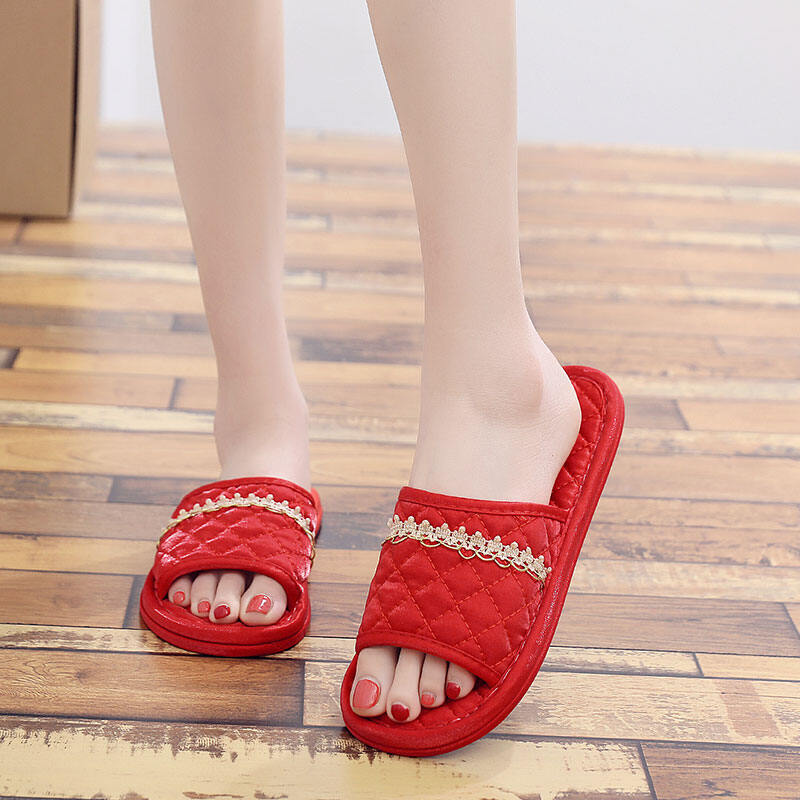 New European-Style Satin Fabric Cloth Bottom Non-Slip Particle Slippers Floor Mute Home Indoor Couple Spring and Summer Four Seasons