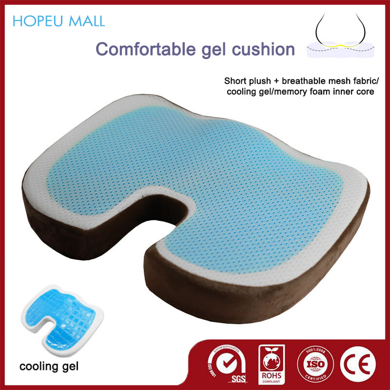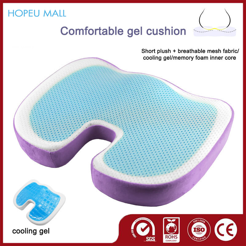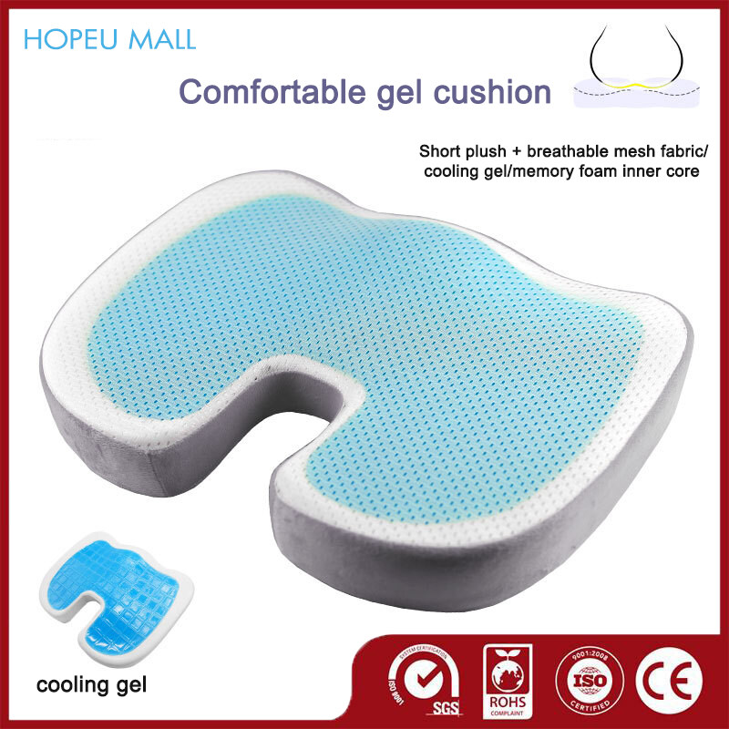This Chair Cushion is designed for your needs. Memory foam cushion which can increase your comfort when sitting. Cooling gel makes you more comfortable Product Features: - High Quality Fabric, soft and comfortable, safe and not toxic. - Memory Foam has a very high tensile strength and is extremely durable - Gel cushion can disperse heat, so that you can be cool and comfortable in summer. - Features a specially-positioned U-shaped cut-out that gently suspends your tailbone to relieve pressure. - Unique shape will relieve pressure on your back and hips while providing a comfortable place to sit for long periods. - Ladies use U terminal backwards, men use U-end forward. - The cover is machine washable and can be removed using the zipper for easy cleaning. More Reasons Why You Need This Product: * U-shaped Empty Slot - The back of the spine away from the oppression of seat, alleviate the pressure of the tailbone. * Ergonomic Coccyx Design - Relieves painful pressure on your tailbone, Encourages a good spine position. * Natural Cervical Curve - Natural groove curve design, to promote blood circulation of legs. * High and Low Design - Contoured molded seat cushion that evenly distributes body weight.