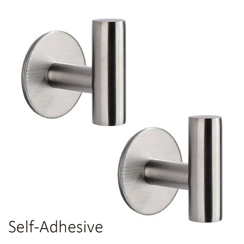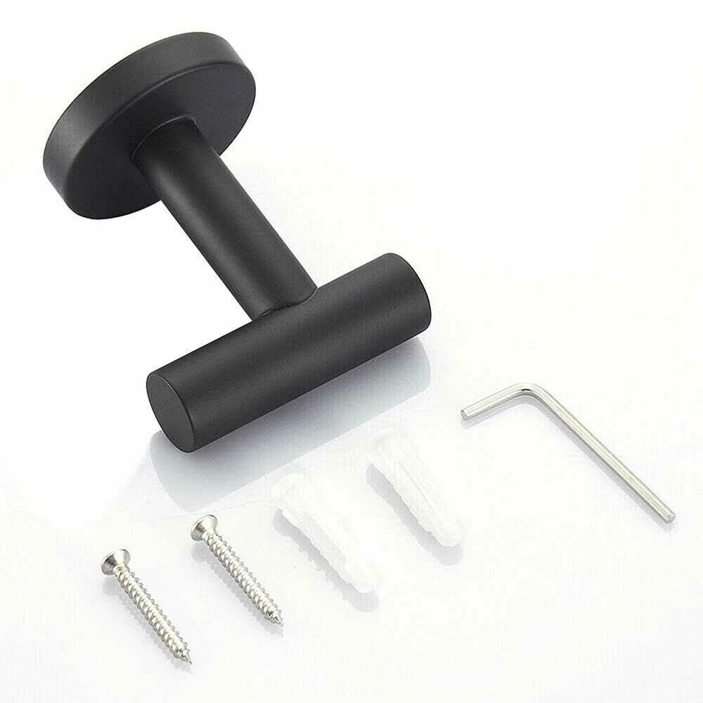 2PCS Wall Hook Stainless Steel Clothes Hanging Hooks Matte Black 3M Adhesive Key Towel Holder for Bathroom Kitchen