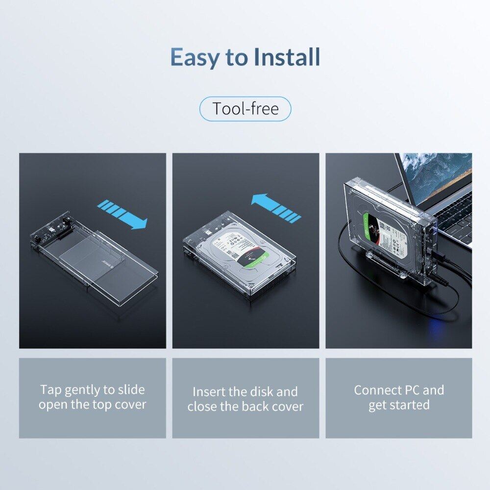 ORICO HDD Case 3.5 SATA to USB3.0 6Gbps Transparent Hard Drive Enclosure for HDD SSD Disk HD External HDD Enclosure 16TB(3159U3)