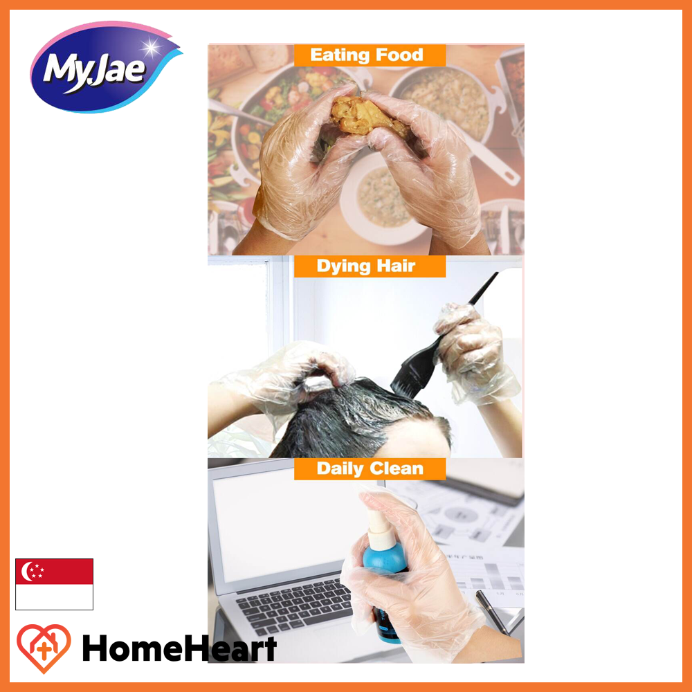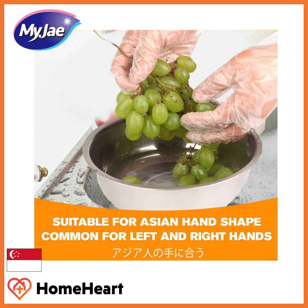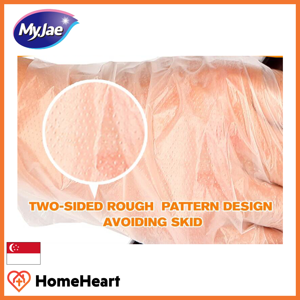 [2 Pack] (200pcs) MyJae PE Disposable Gloves - Non Toxic, Thick, Leakproof With Ribbed Design For Added Friction (200pcs) [2 Pack]