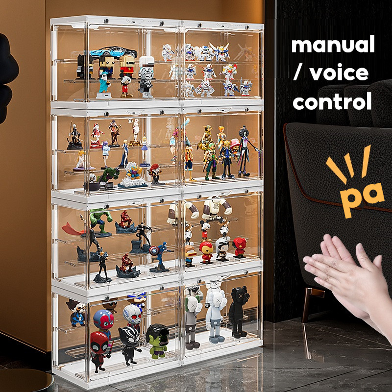 LED Light Fully Transparent Display Case Blind Box Lego Popmart Storage with Rack Shelf