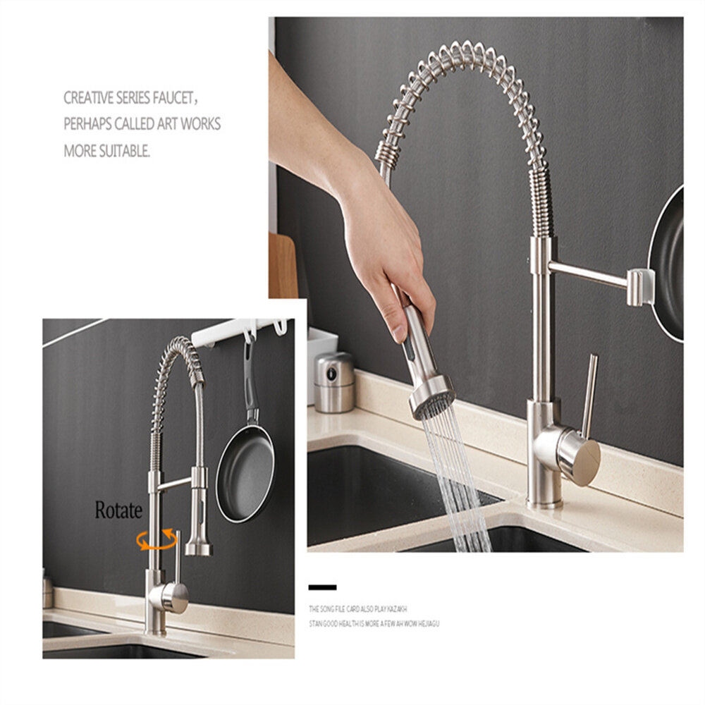Kitchen sink tap pull out spring faucet 304 stainless steel single cold water faucet deck mounted dual mode water outlet silver kitchen faucet
