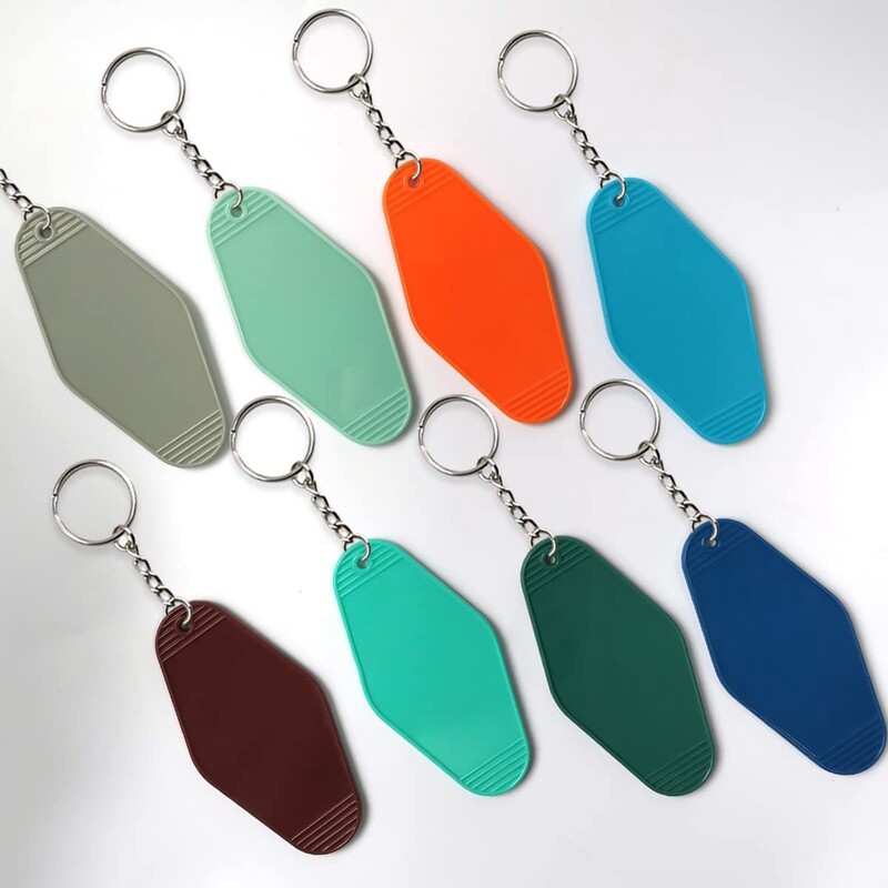 Package Contents: 32pcs Vintage Motel Keychains Blank key tags in different colors, including 4 clear colors.