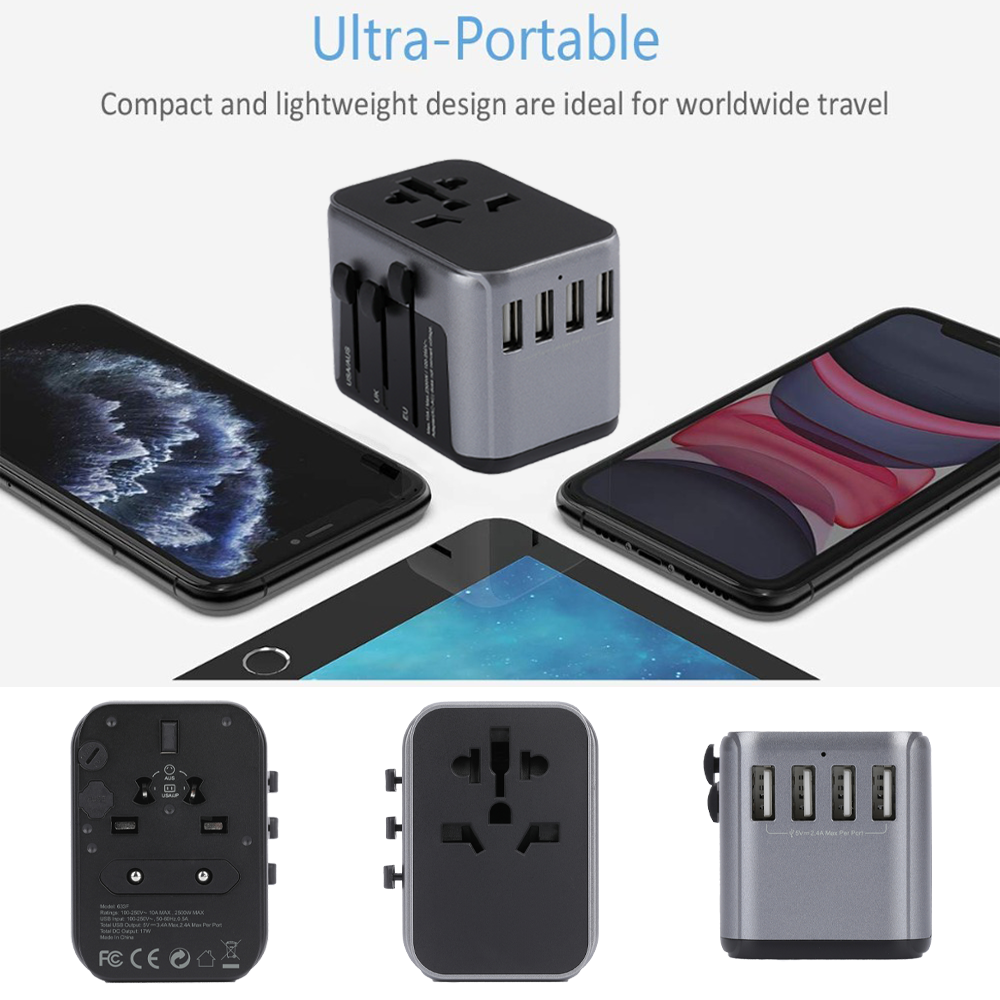 • 5 in 1 Input Universal Outlet Adapter: International adapter plug converter with 4 USB outlet can detect charged devices and deliver optimum fast charging speed up to 2.4A (max) each port for cell phone, power bank etc.(It doesn’t support quick charge). Idea for use at home or hotel as a USB wall plug. Allow you charge up to 5 devices simultaneously