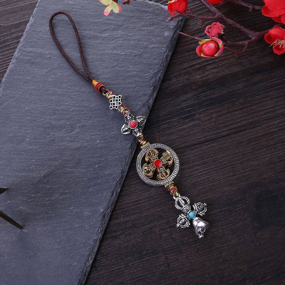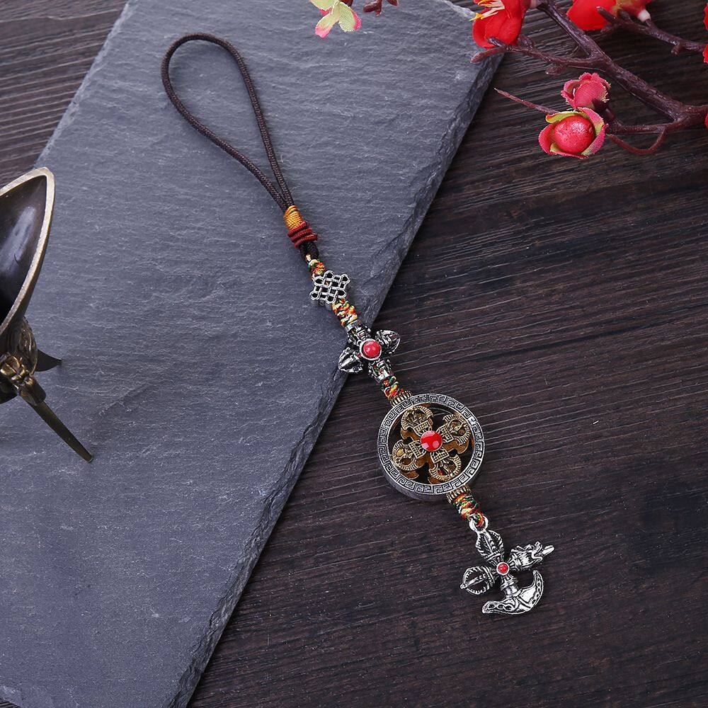 BIRONG Vintage Couple Gifts Braied Rope Dispelling Evil Car Key Chain DIY Ornaments Keyring Pendant Mobile Phone Lanyard Cross Vajra Pestle Tag Pentant Car Pendant Tibetan Tantric Auspicious Knot Cros