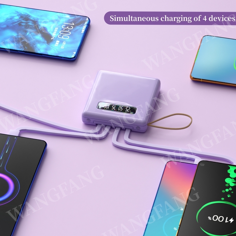 • Comes with detachable four-wire. Comes with Iphone interface, Type-c interface, Micro interface, USB interface. Charge 4 devices at the same time.