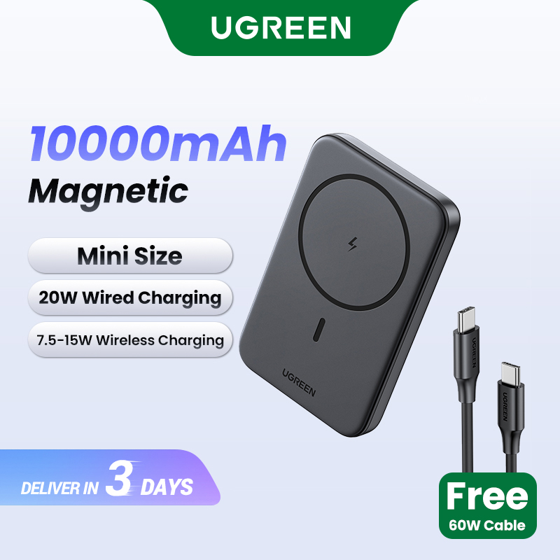 UGREEN 5000mAh/10000mAh PD 20W Powerbank USB Type C Magnetic Wireless Charging Power Bank Portable Charger Compatible for iPhone 16 15 Pro Max iPhone 16 15 Plus Samsung S24 Ultra S23 Pixel Huawei Hono
