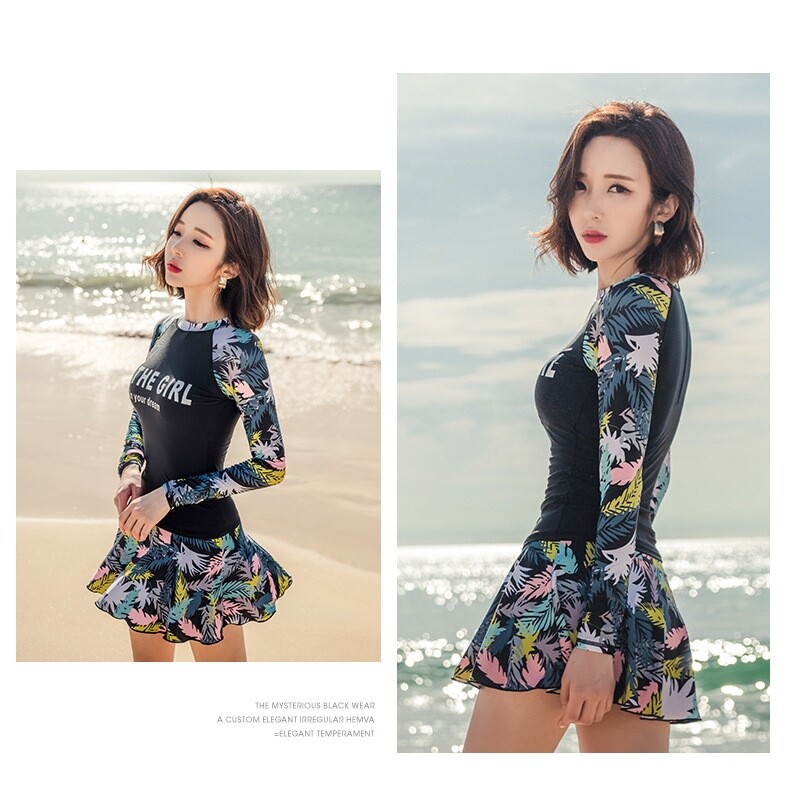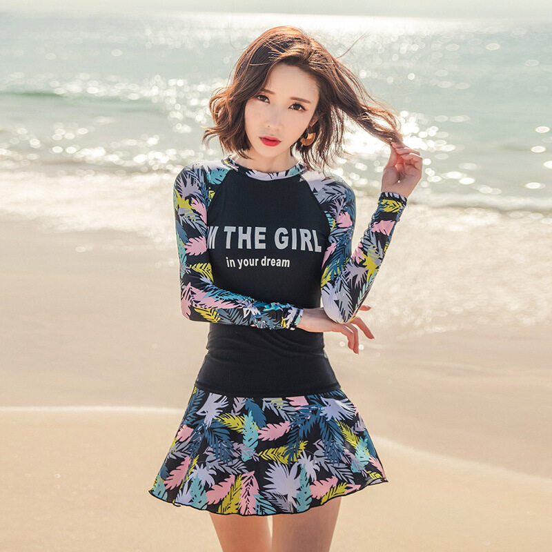 2Pcs/set Women Fashion Skirt Swimsuits Women Swimwear Long Sleeves Plus Size Zip Swimming Culottes Suit for Women