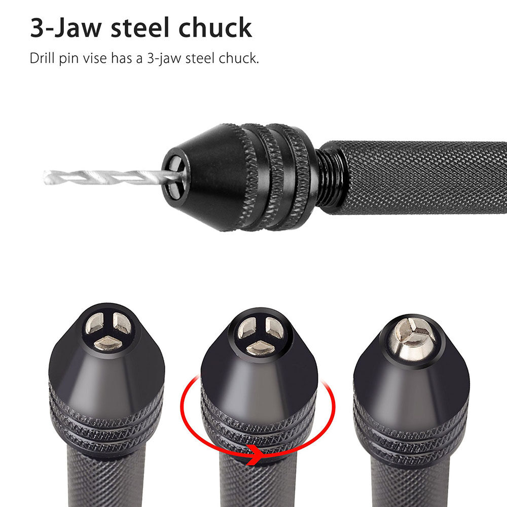 *High quality: This adjustable vice has 3 jaw-hardened steel keyless chucks, which can hold small drill bits tightly. After repeated use, the drill will not slip or fall off. And can adjust thedrill with a diameter of 0.2-3.4mm.