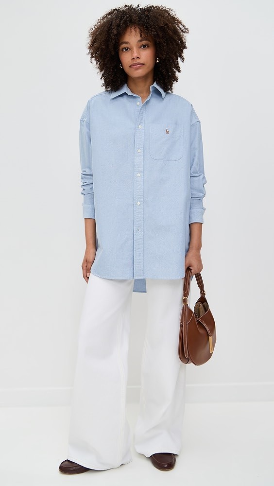 Strap at top with gold-tone logo hardware